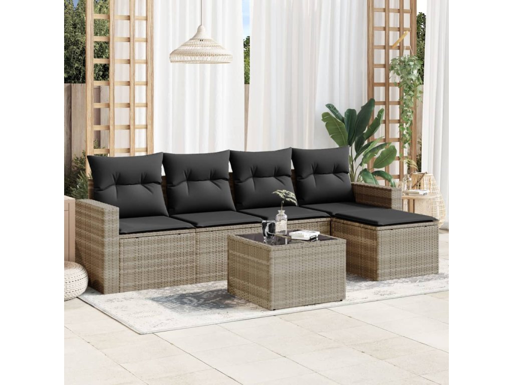 6dílná zahradní sedací souprava a podušky světle šedá polyratan 3218892