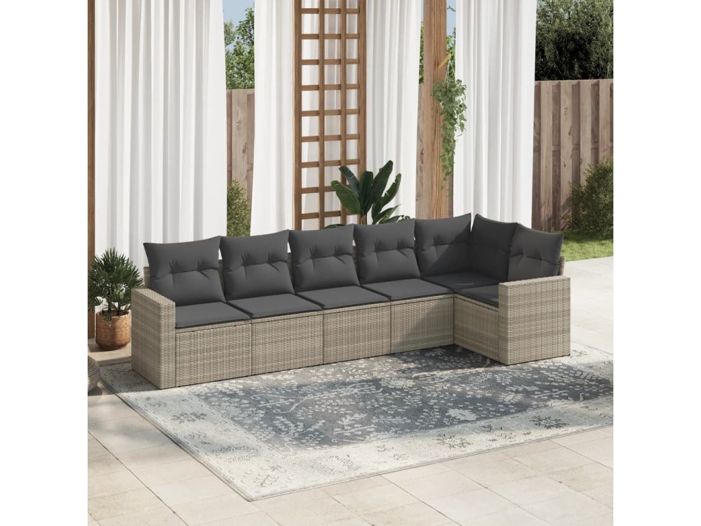 6dílná zahradní sedací souprava a podušky světle šedá polyratan 3218982