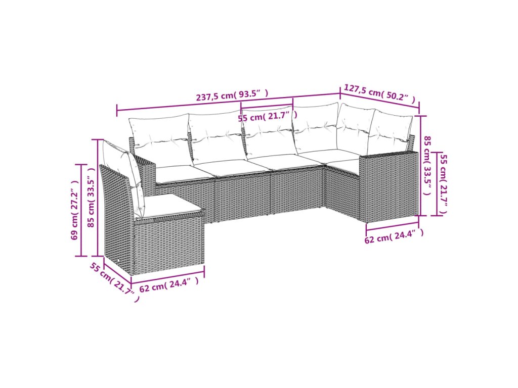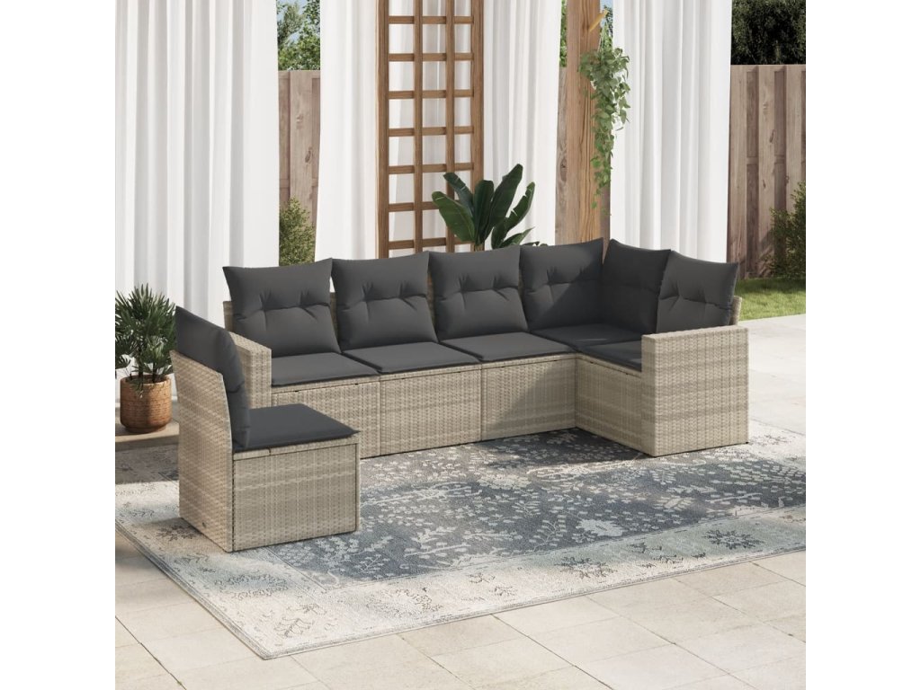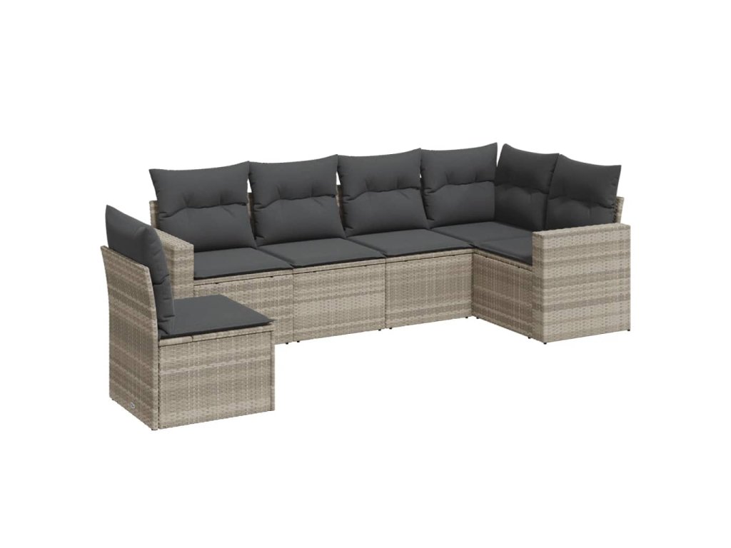 6dílná zahradní sedací souprava a podušky světle šedá polyratan 3219022