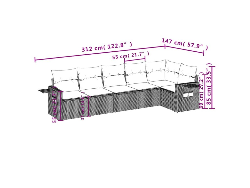 Tato zahradní sedací souprava je dokonalým doplňkem vaší zahrady, terasy nebo dvorku a poskytne vám pohodlné a příjemné místo, kde si můžete povídat s rodinou a přáteli nebo jen tak odpočívat a užívat si pobyt venku.