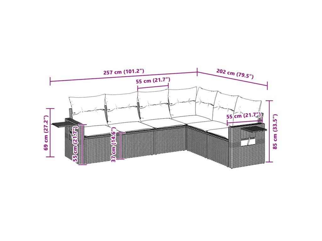 Tato zahradní sedací souprava je dokonalým doplňkem vaší zahrady, terasy nebo dvorku a poskytne vám pohodlné a příjemné místo, kde si můžete povídat s rodinou a přáteli nebo jen tak odpočívat a užívat si pobyt venku.