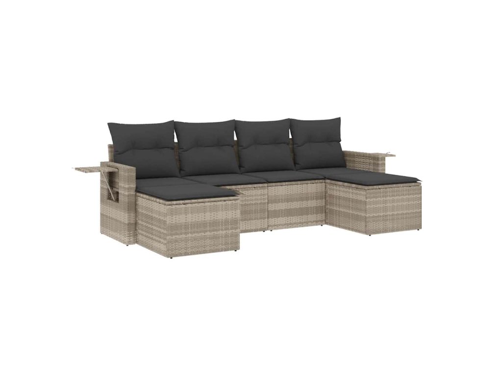 6dílná zahradní sedací souprava a podušky světle šedá polyratan 3220521