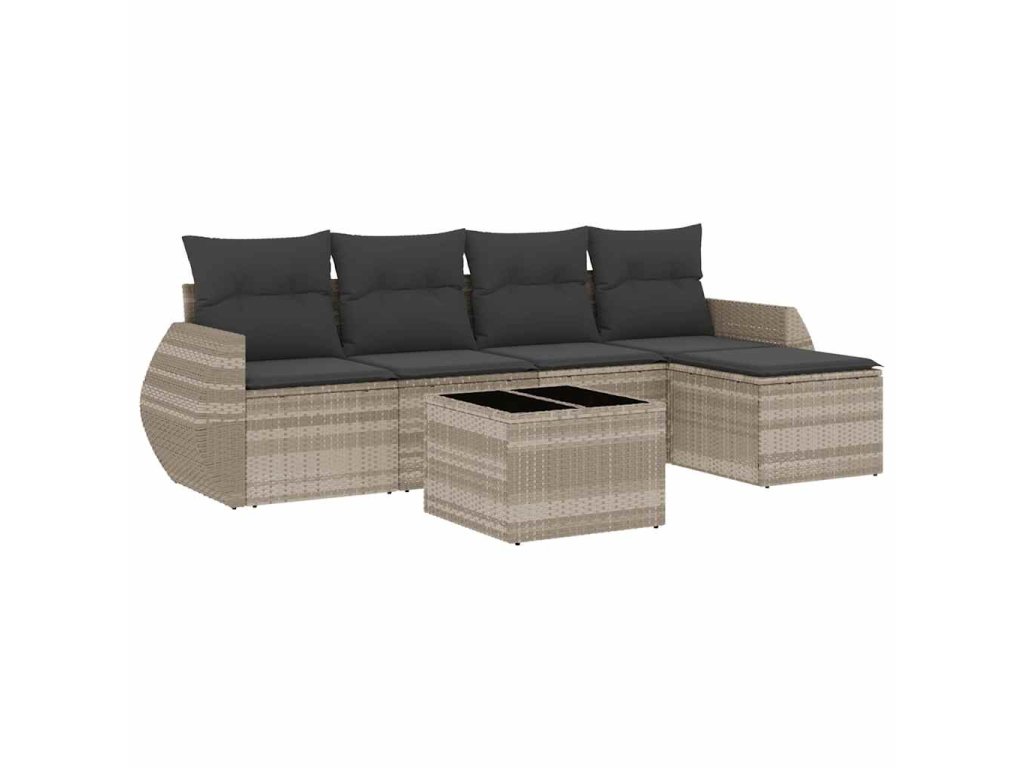 6dílná zahradní sedací souprava a podušky světle šedá polyratan 3221301
