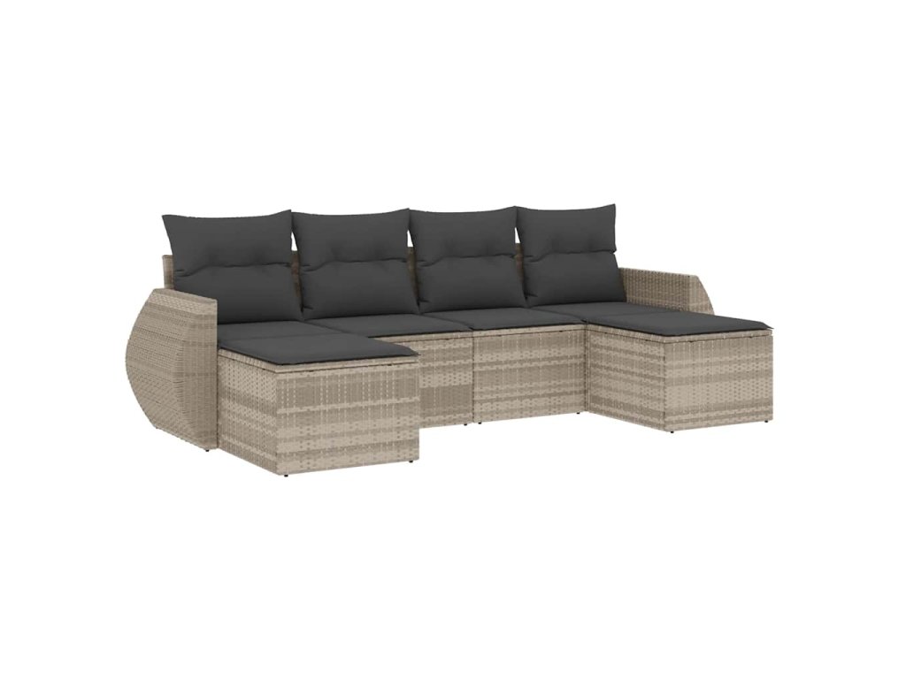 6dílná zahradní sedací souprava a podušky světle šedá polyratan 3221721