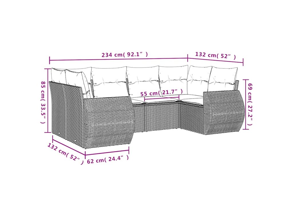 6dílná zahradní sedací souprava a podušky světle šedá polyratan 3221781
