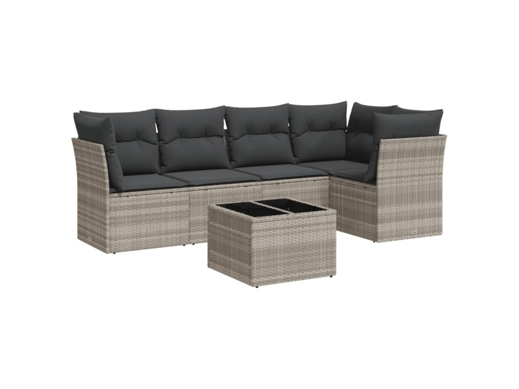 6dílná zahradní sedací souprava a podušky světle šedá polyratan 3249451
