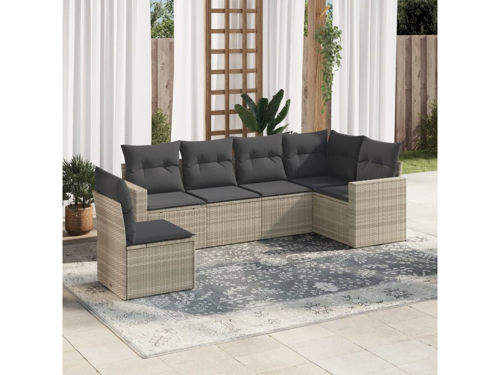6dílná zahradní sedací souprava a podušky světle šedá polyratan 3251369