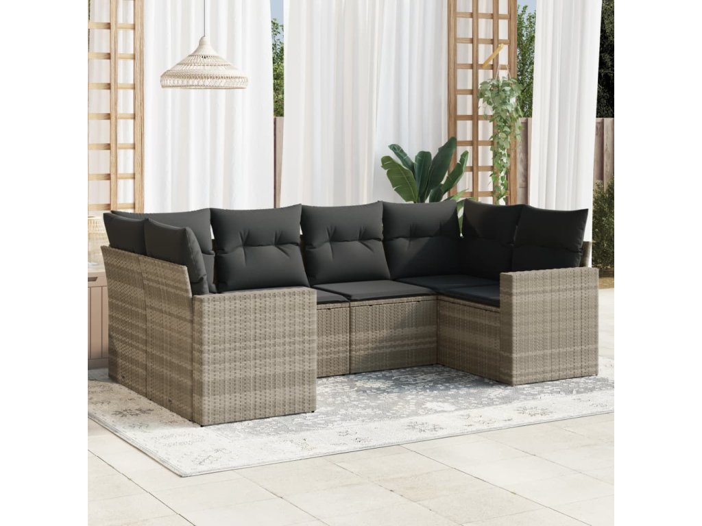 6dílná zahradní sedací souprava a podušky světle šedá polyratan 3251719