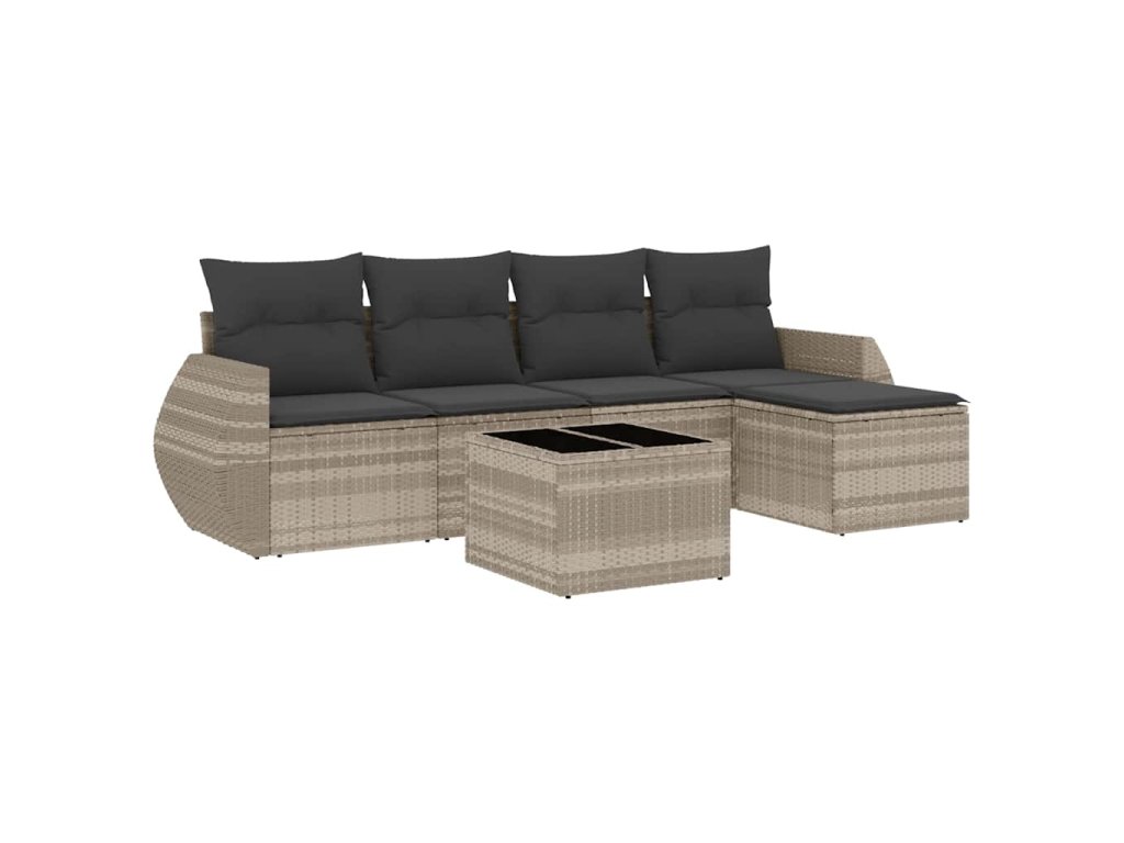 6dílná zahradní sedací souprava a podušky světle šedá polyratan 3253639
