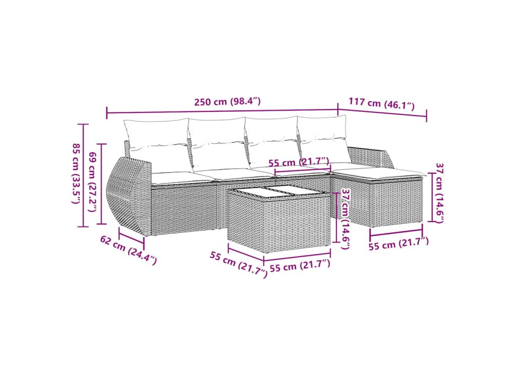 Tato zahradní sedací souprava je dokonalým doplňkem vaší zahrady, terasy nebo dvorku a poskytne vám pohodlné a příjemné místo, kde si můžete povídat s rodinou a přáteli nebo jen tak odpočívat a užívat si pobyt venku.