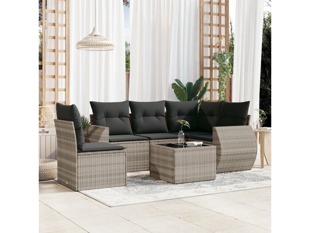 6dílná zahradní sedací souprava a podušky světle šedá polyratan 3253719