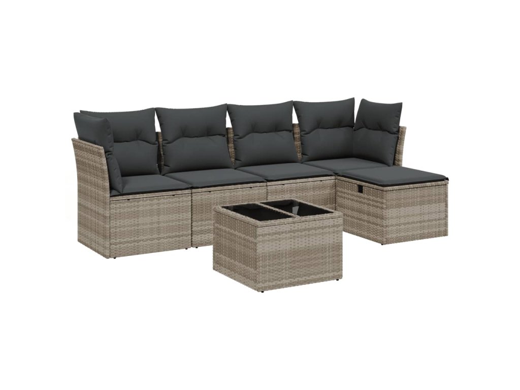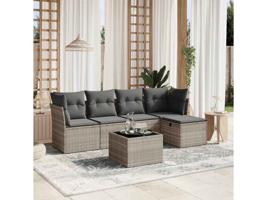 6dílná zahradní sedací souprava a podušky světle šedá polyratan 3263148