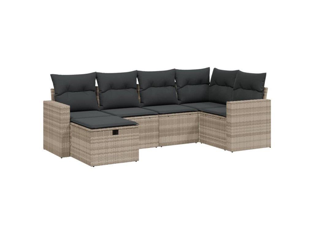 6dílná zahradní sedací souprava a podušky světle šedá polyratan 3263488