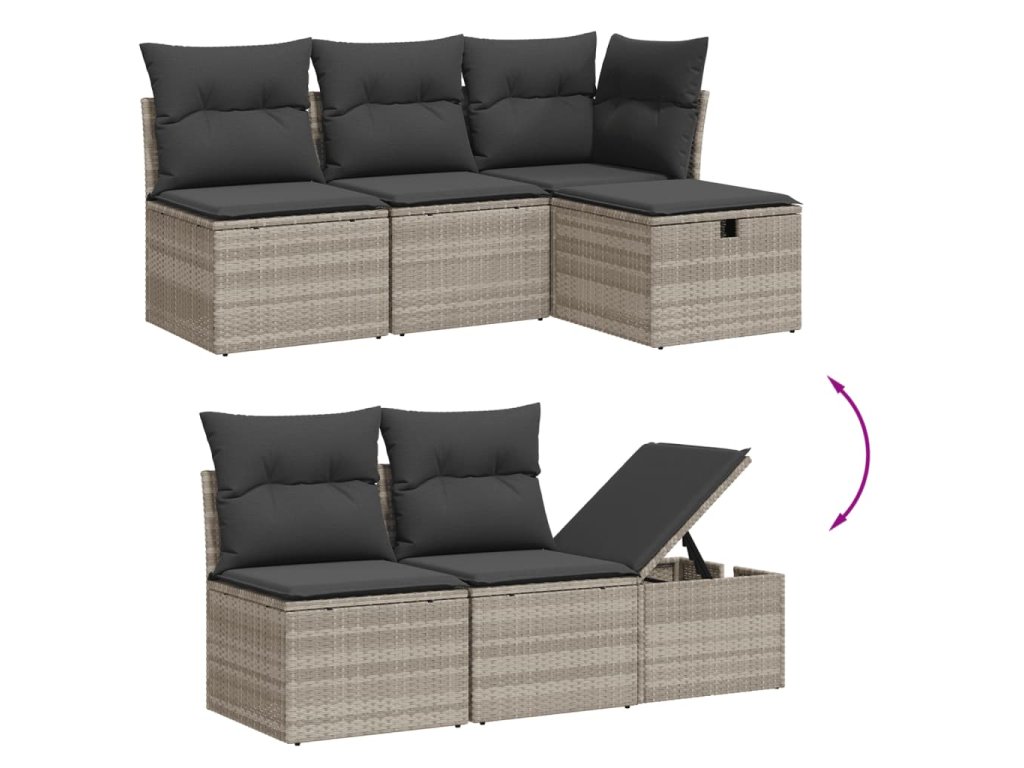 - Modulární design: Tato sada venkovního nábytku se vyznačuje modulární konstrukcí, je tedy zcela flexibilní a lze ji snadno přemisťovat, takže si můžete uspořádat venkovní nábytek dle vašich potřeb.