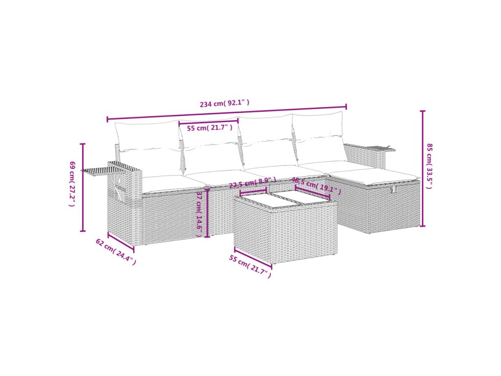 Tato zahradní sedací souprava je dokonalým doplňkem vaší zahrady, terasy nebo dvorku a poskytne vám pohodlné a příjemné místo, kde si můžete povídat s rodinou a přáteli nebo jen tak odpočívat a užívat si pobyt venku.