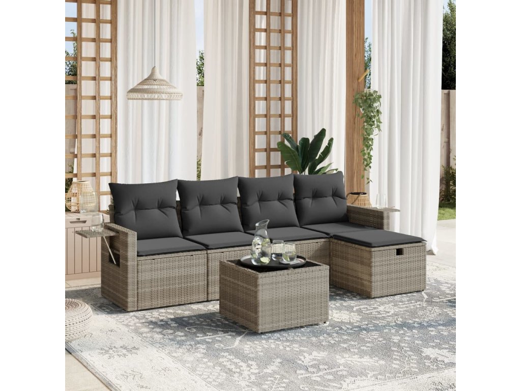 6dílná zahradní sedací souprava a podušky světle šedá polyratan 3263788
