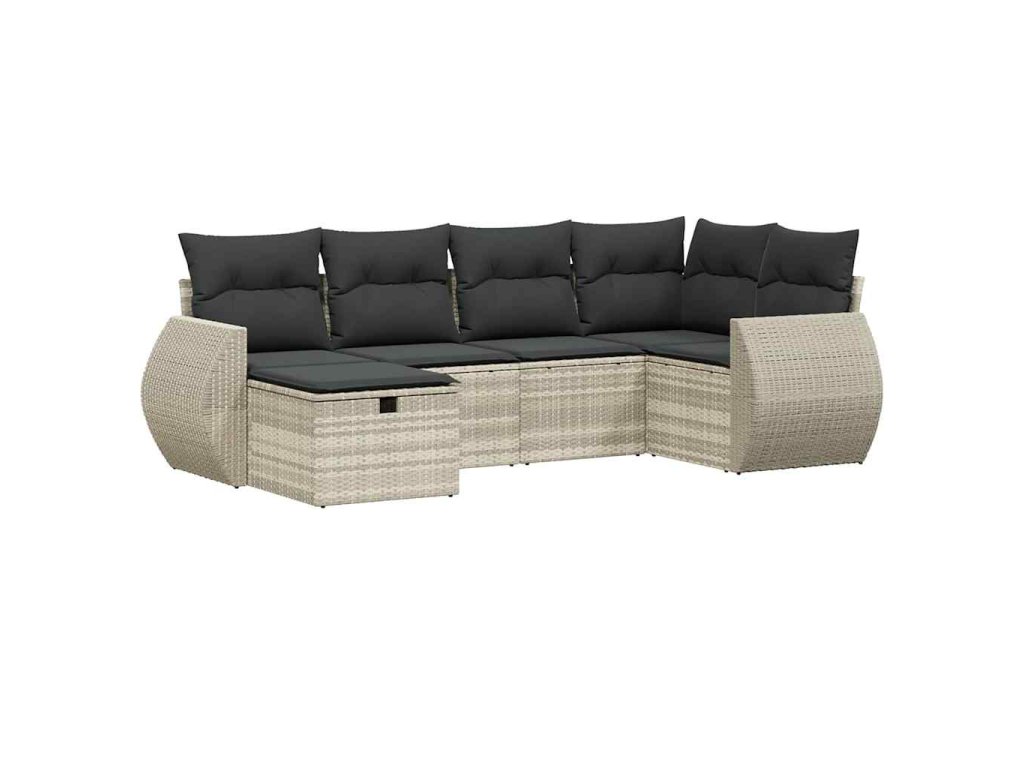 6dílná zahradní sedací souprava a podušky světle šedá polyratan 3264108