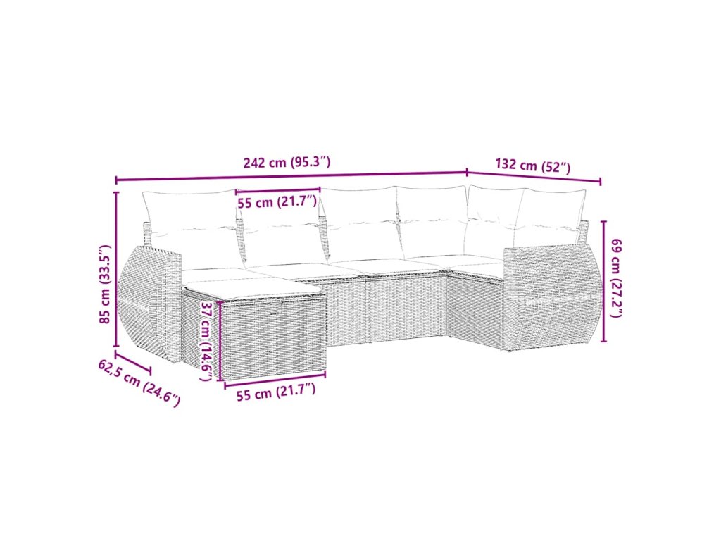 Tato zahradní sedací souprava je dokonalým doplňkem vaší zahrady, terasy nebo dvorku a poskytne vám pohodlné a příjemné místo, kde si můžete povídat s rodinou a přáteli nebo jen tak odpočívat a užívat si pobyt venku.