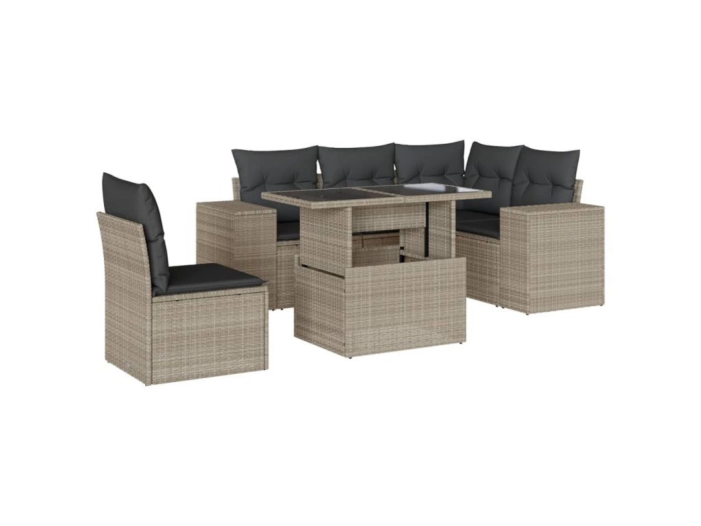 6dílná zahradní sedací souprava a podušky světle šedá polyratan 3269172