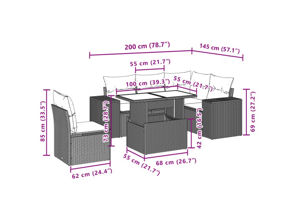 Tato zahradní sedací souprava je dokonalým doplňkem vaší zahrady, terasy nebo dvorku a poskytne vám pohodlné a příjemné místo, kde si můžete povídat s rodinou a přáteli nebo jen tak odpočívat a užívat si pobyt venku.