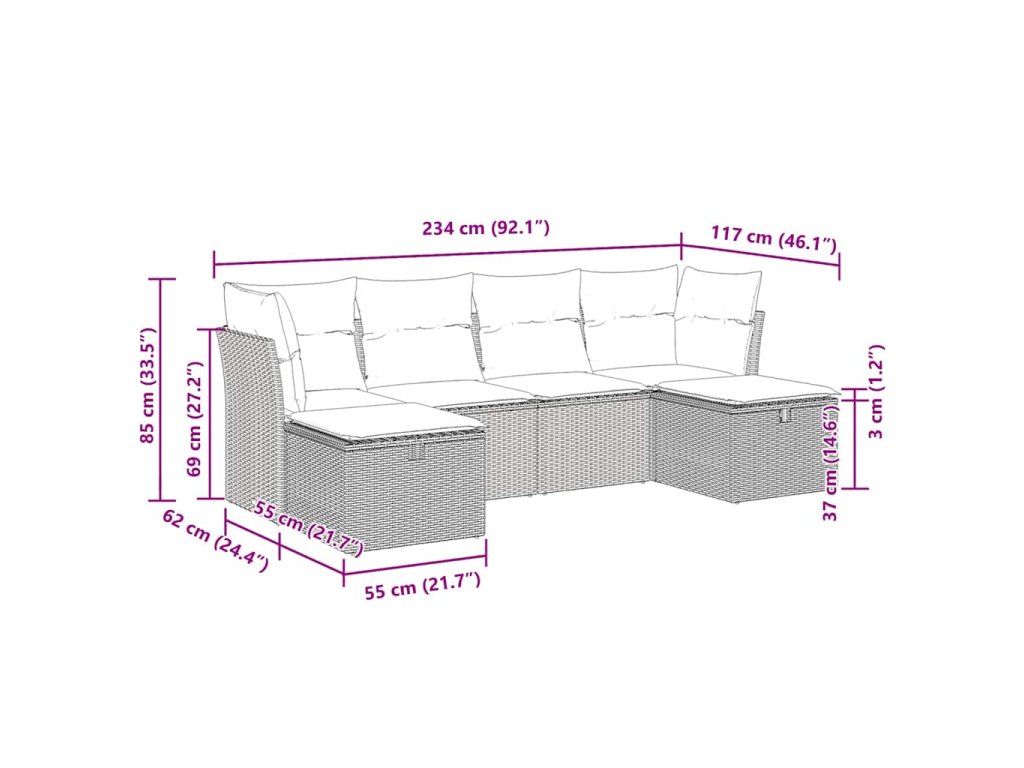 Tato zahradní sedací souprava je dokonalým doplňkem vaší zahrady, terasy nebo dvorku a poskytne vám pohodlné a příjemné místo, kde si můžete povídat s rodinou a přáteli nebo jen tak odpočívat a užívat si pobyt venku.