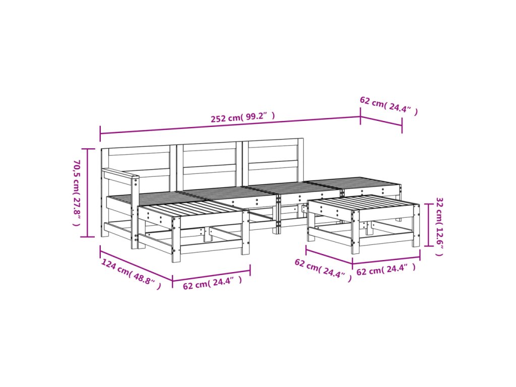 - Rozměry středové pohovky: 62 x 62 x 70,5 cm (Š x H x V)