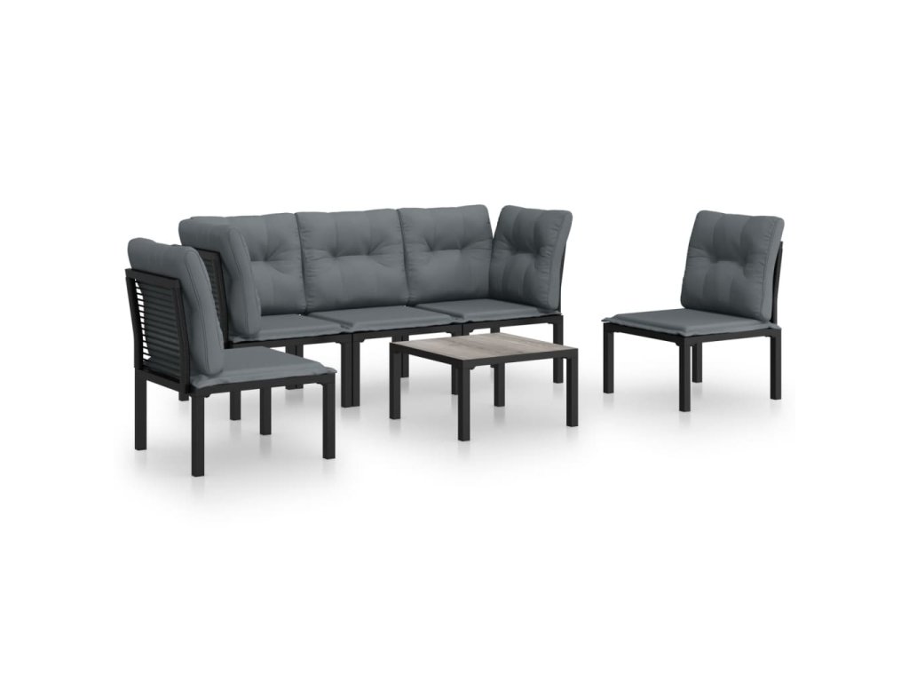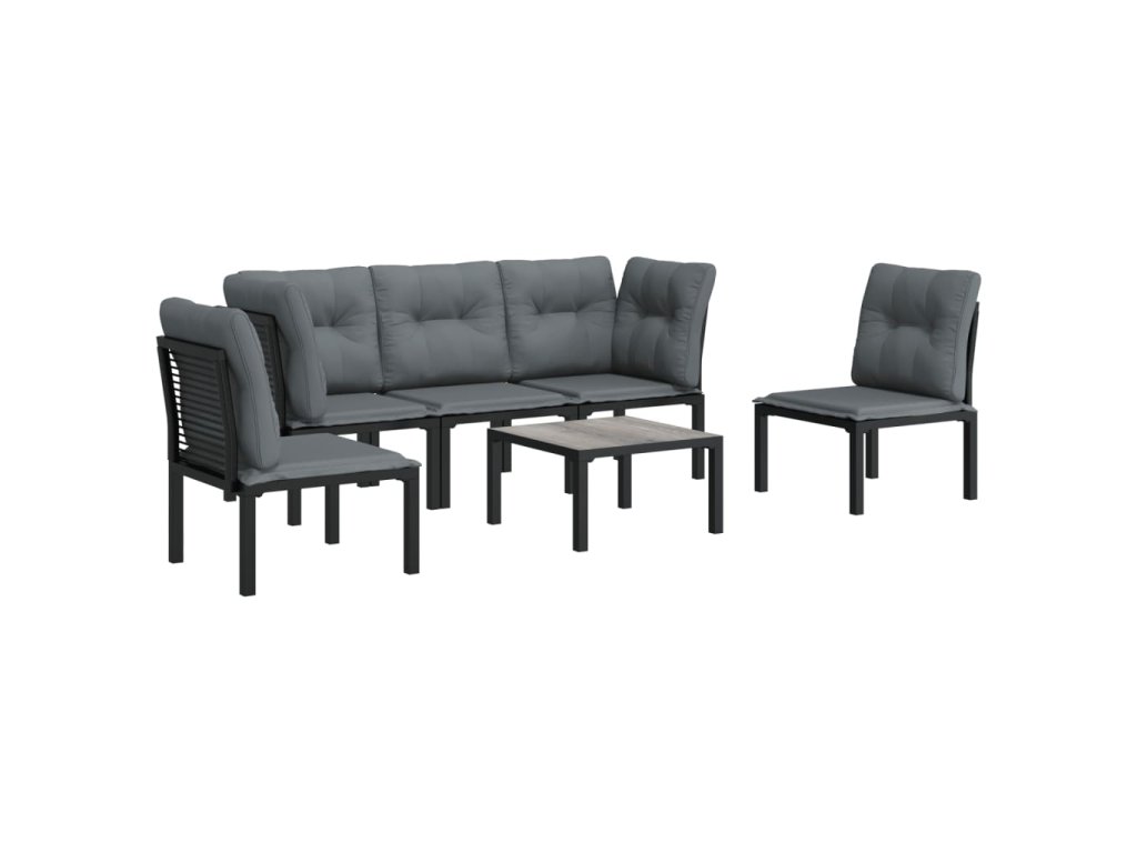 6dílná zahradní sedací souprava černá a šedá polyratan 3187737