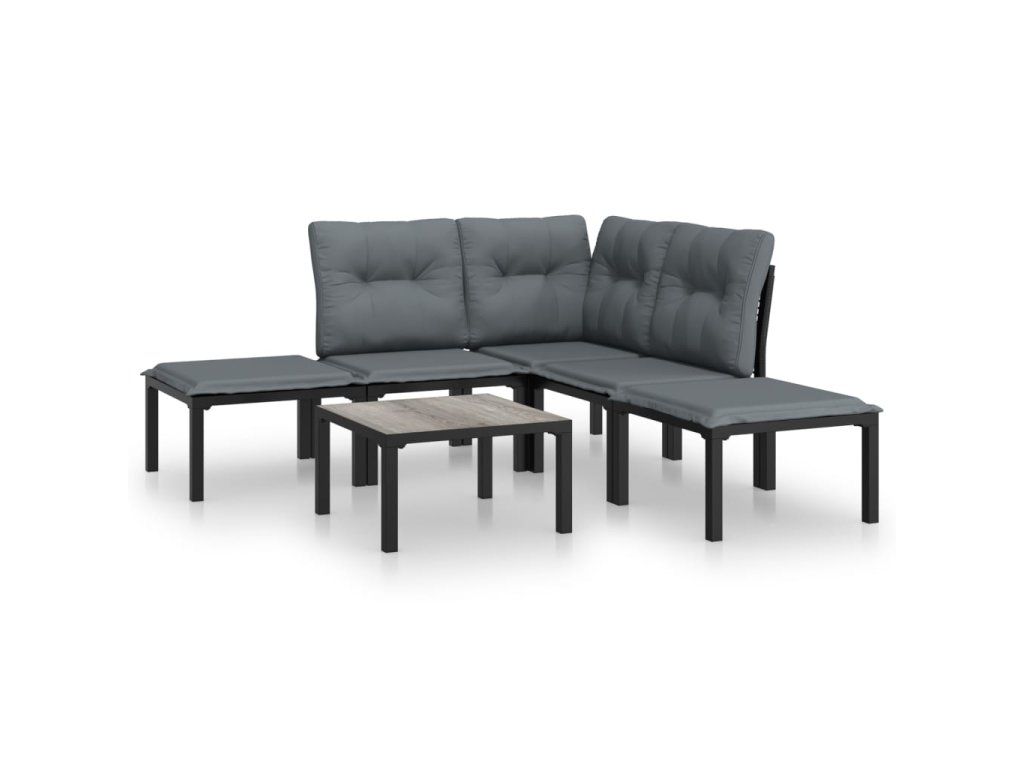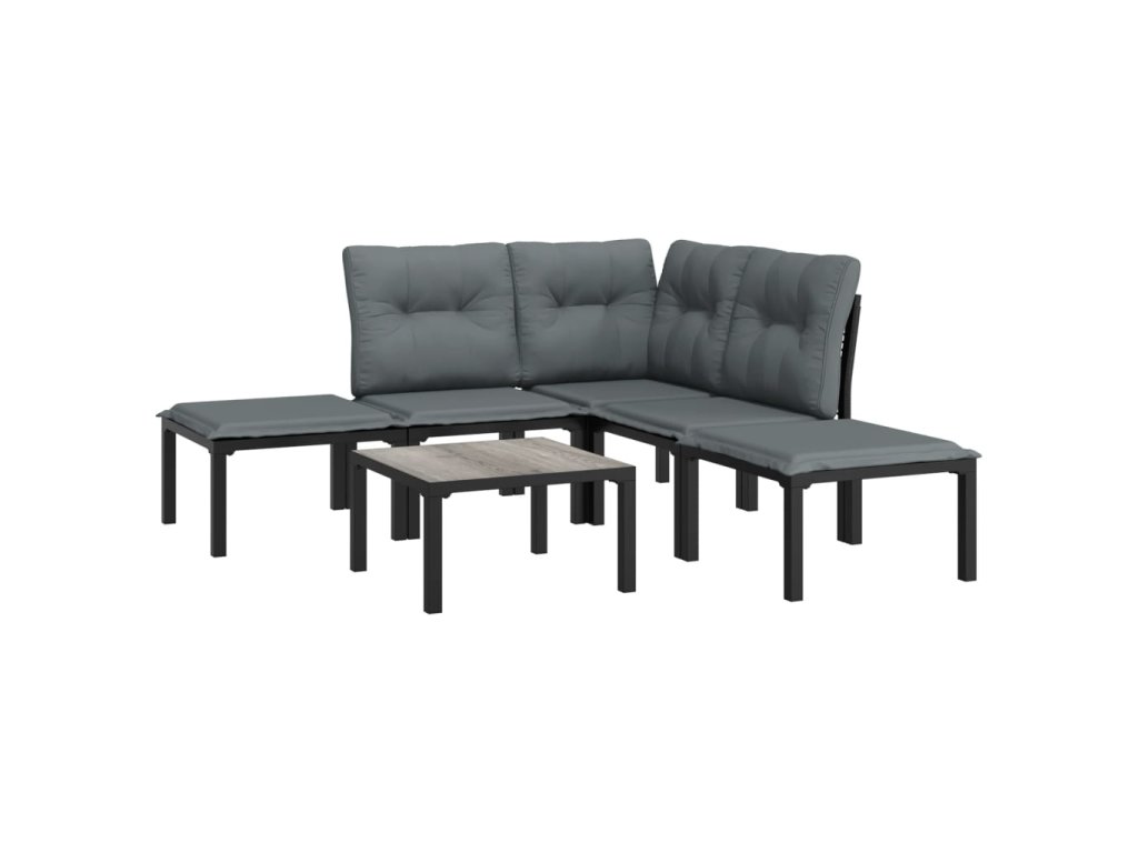 6dílná zahradní sedací souprava černá a šedá polyratan 3187756
