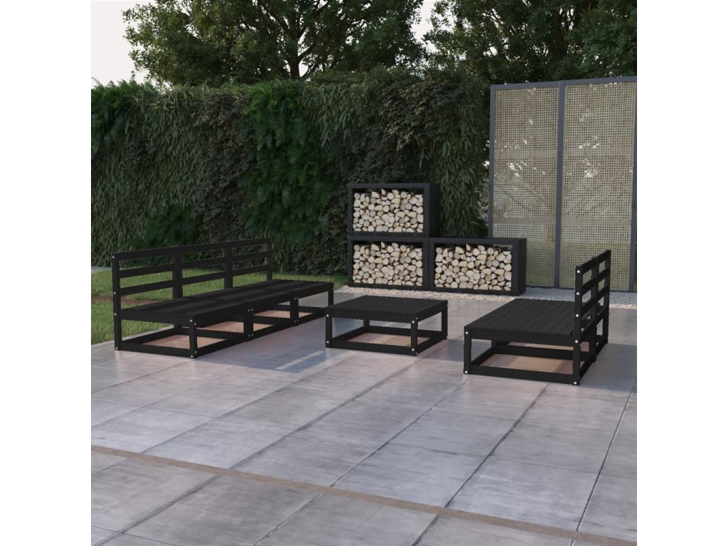 6dílná zahradní sedací souprava černá masivní borovice 3075313