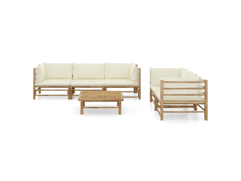 6dílná zahradní sedací souprava + krémově bílé podušky bambus 3058209