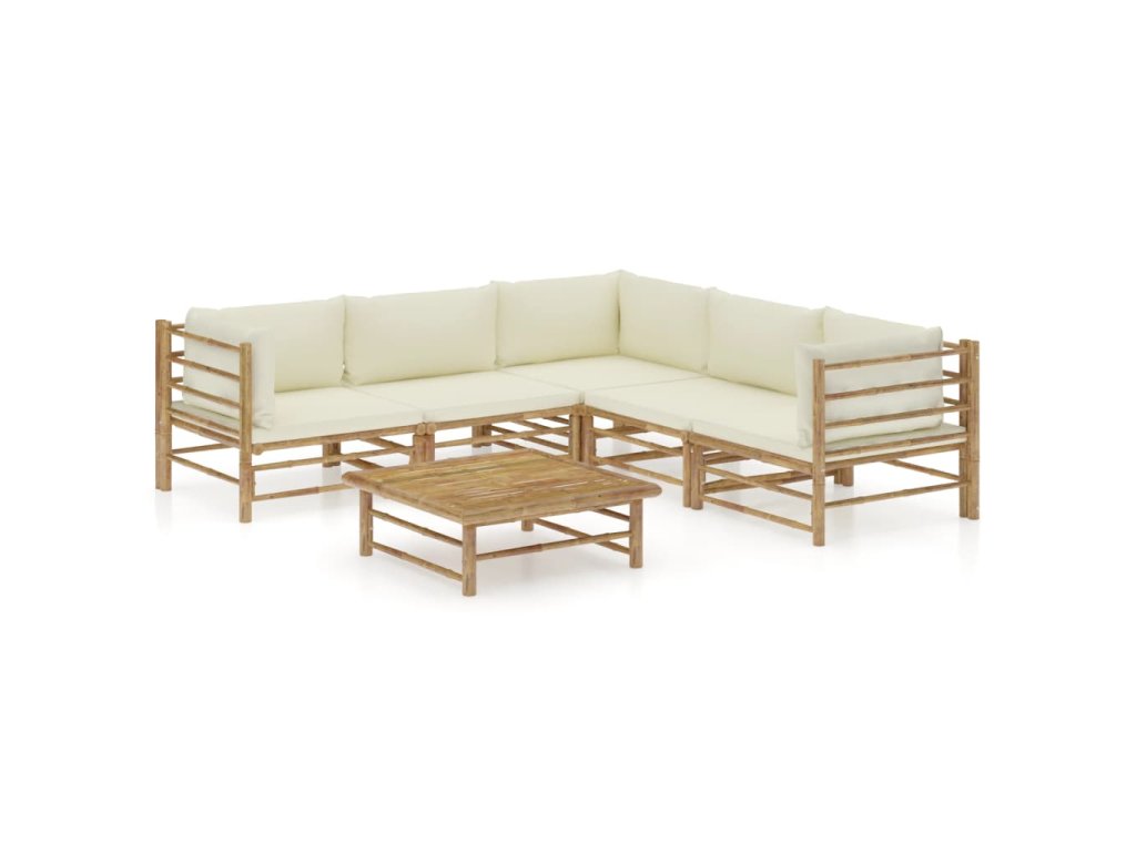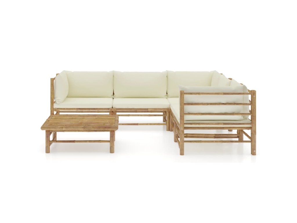 6dílná zahradní sedací souprava + krémově bílé podušky bambus 3058213