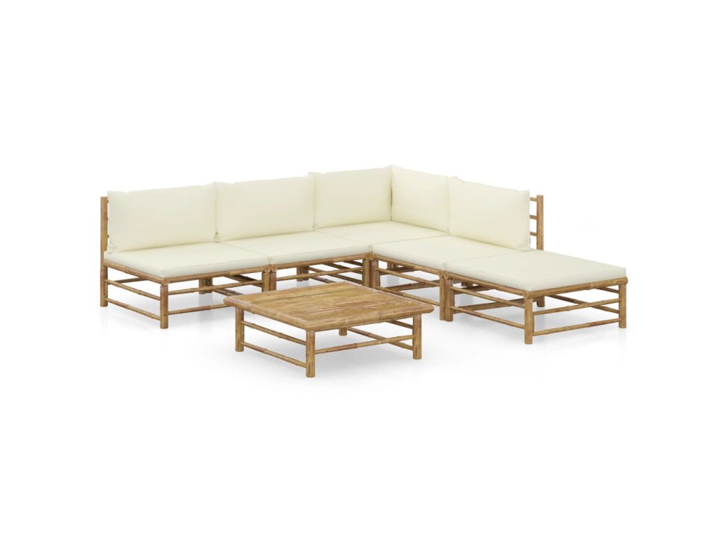 6dílná zahradní sedací souprava + krémově bílé podušky bambus 3058235