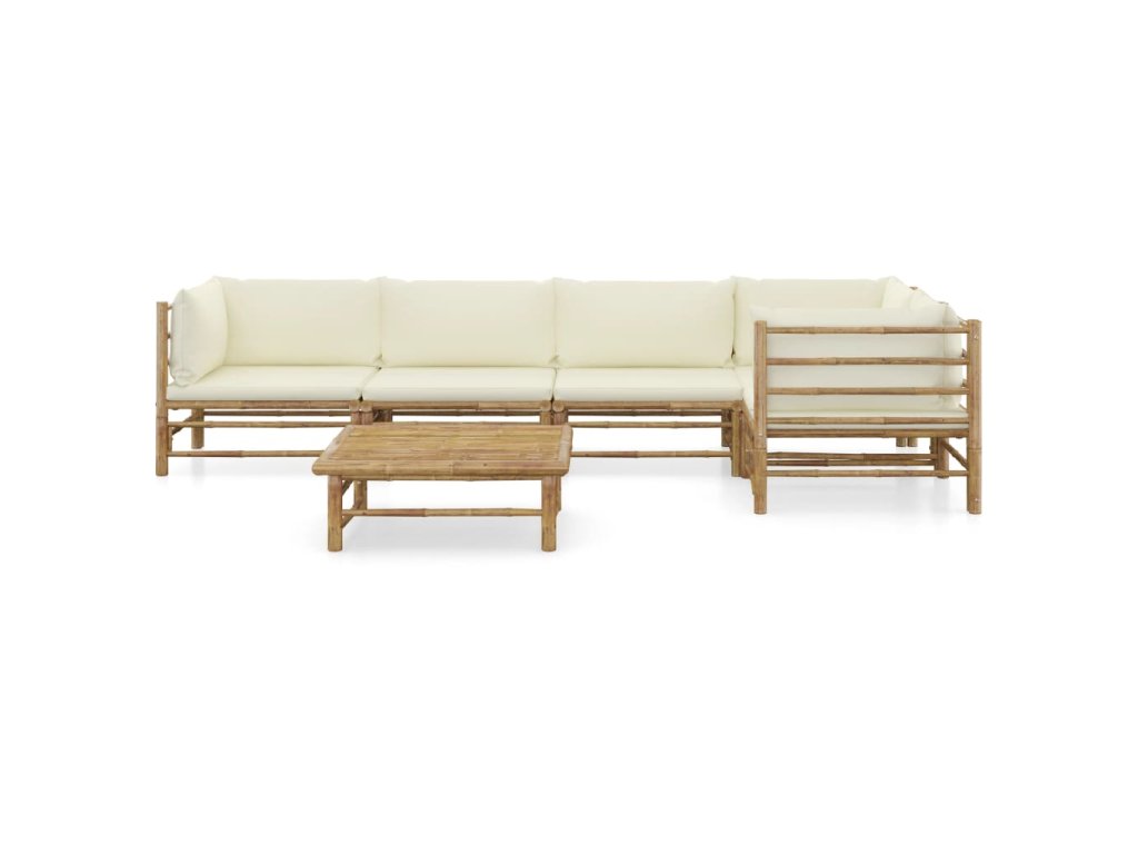 6dílná zahradní sedací souprava + krémově bílé podušky bambus 3058239