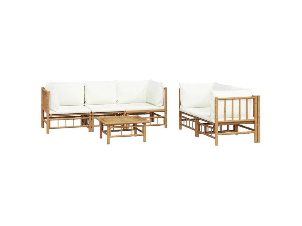 6dílná zahradní sedací souprava krémově bílé podušky bambus 3155186