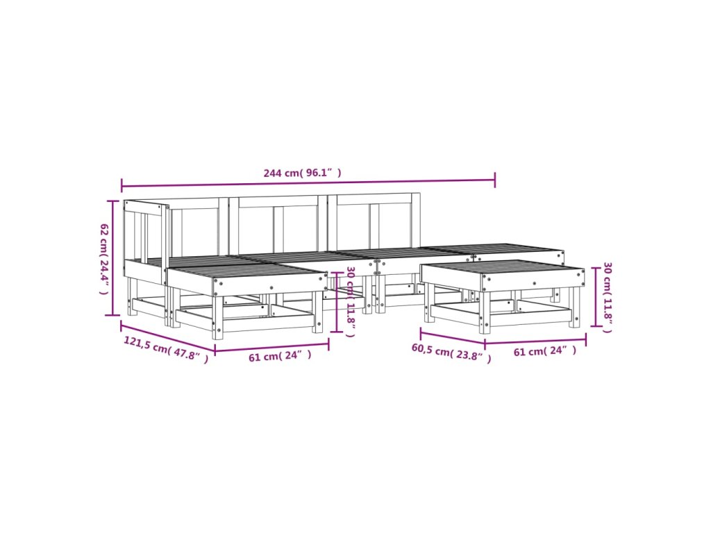 - Rozměry středové pohovky: 61 x 60,5 x 62 cm (Š x H x V)