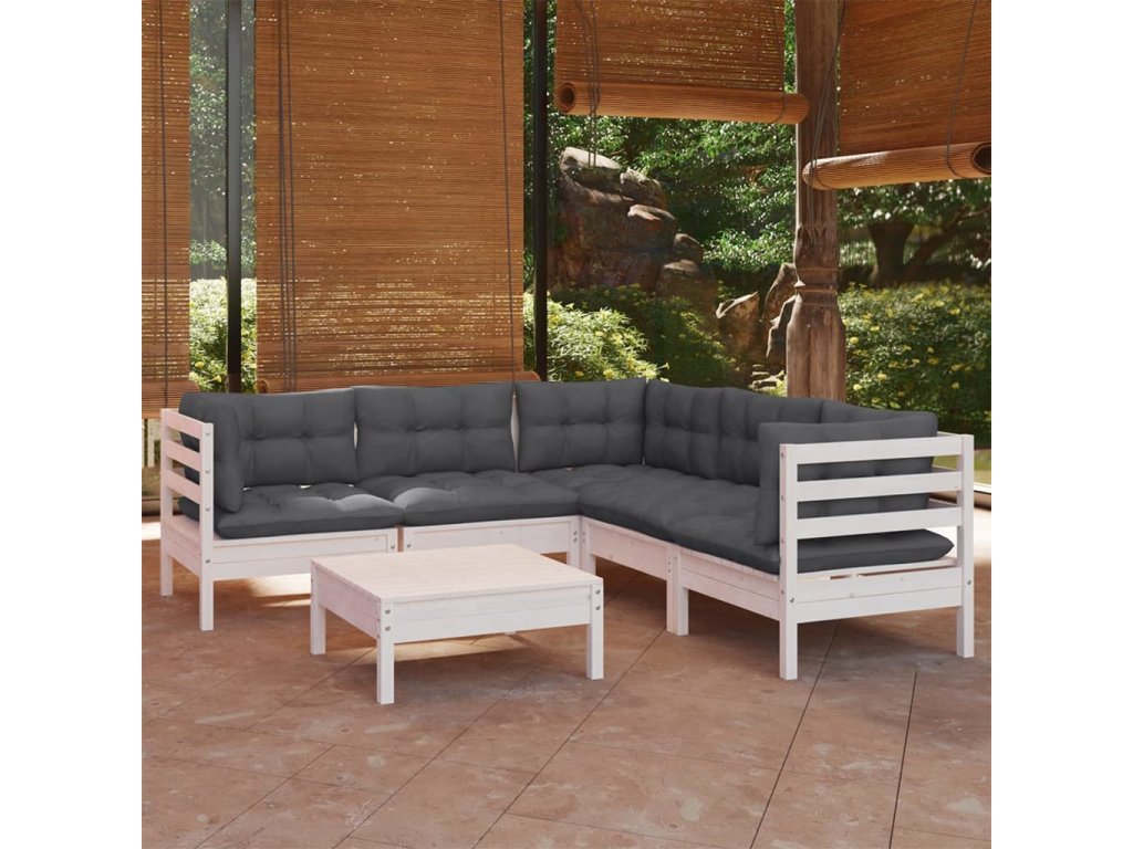 6dílná zahradní sedací souprava podušky bílá masivní borovice 3096678