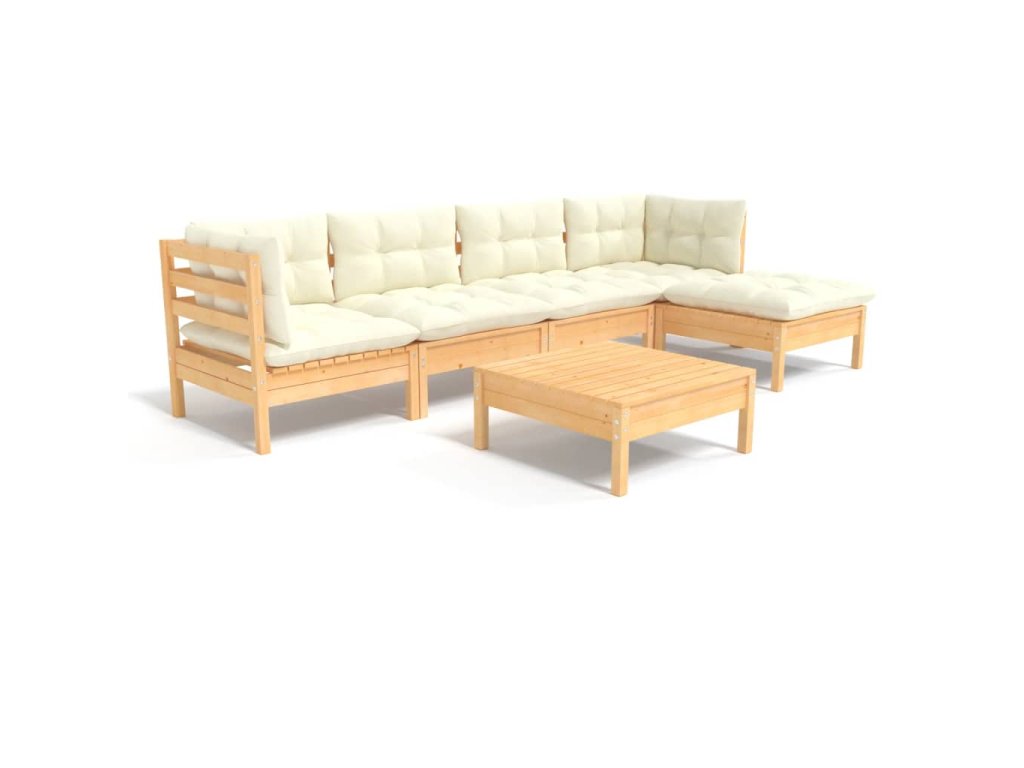6dílná zahradní sedací souprava s krémovými poduškami borovice 3096364