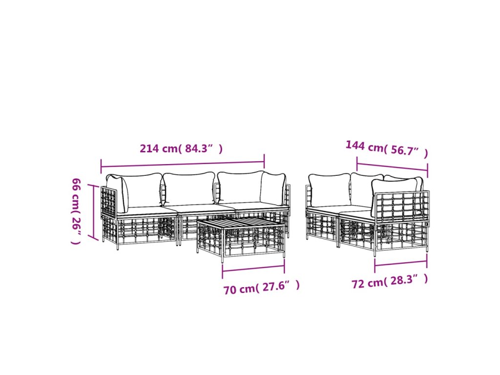 6dílná zahradní sedací souprava s poduškami antracit polyratan 3186704
