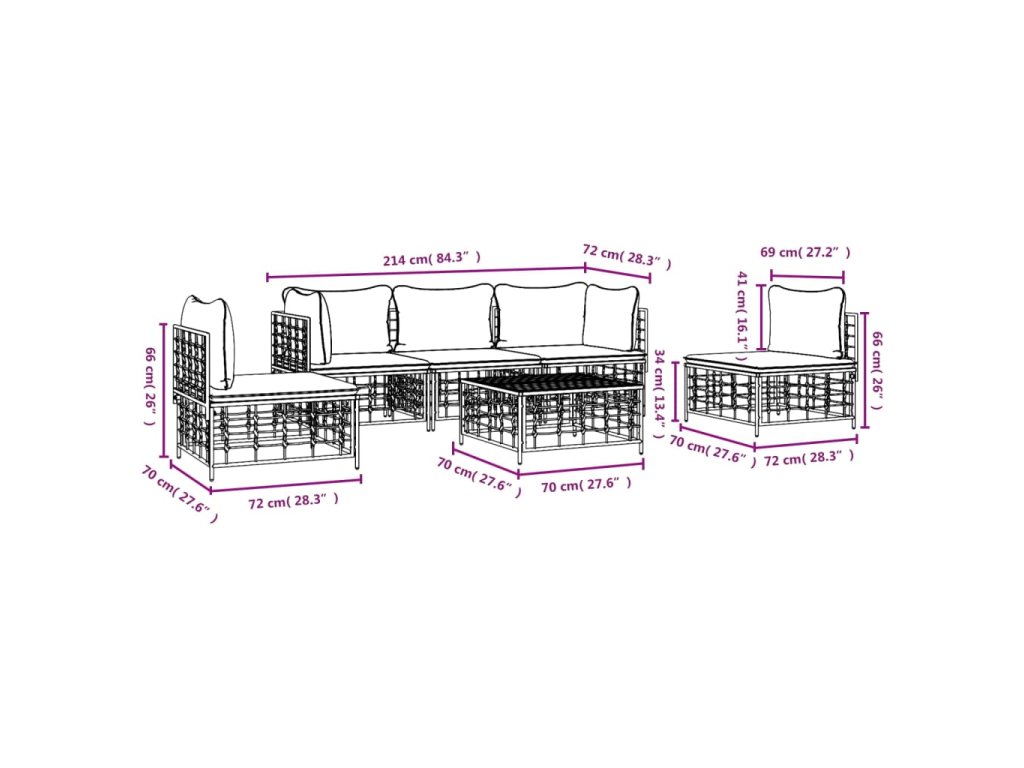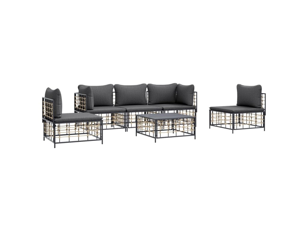 6dílná zahradní sedací souprava s poduškami antracit polyratan 3186719