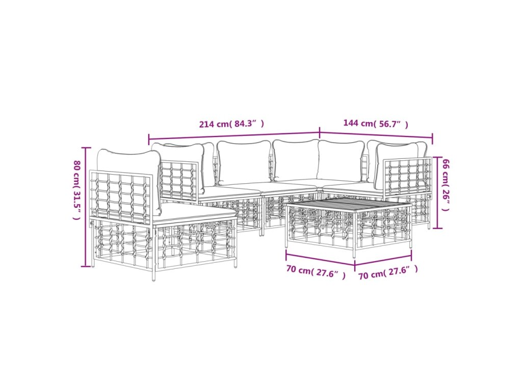 6dílná zahradní sedací souprava s poduškami antracit polyratan 3186764