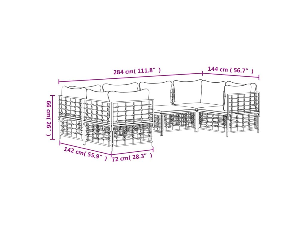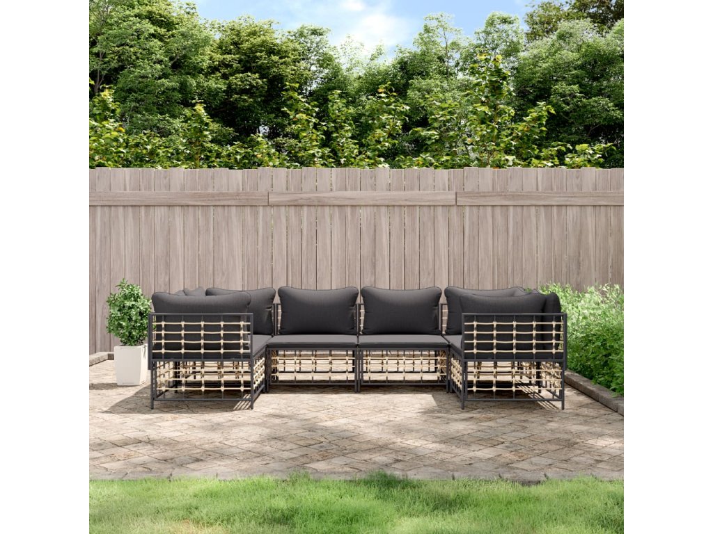 6dílná zahradní sedací souprava s poduškami antracit polyratan 3186797