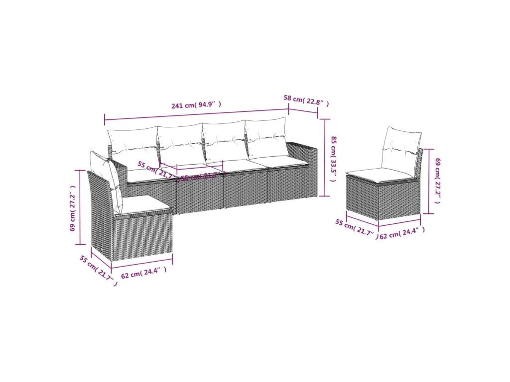 6dílná zahradní sedací souprava s poduškami béžová polyratan 3218798