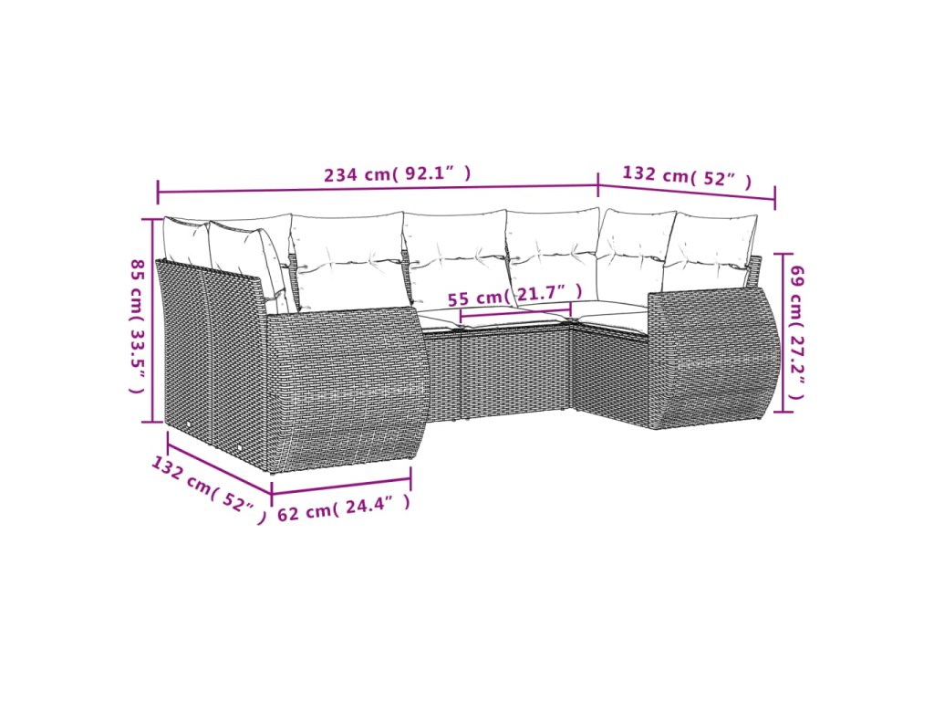6dílná zahradní sedací souprava s poduškami béžová polyratan 3221777