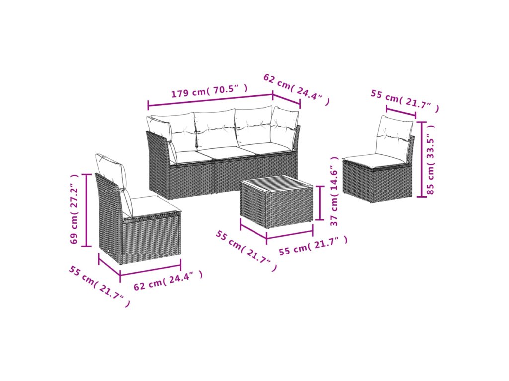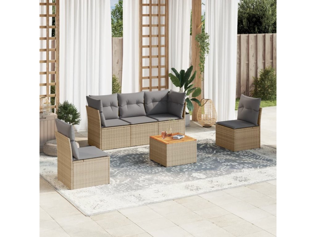 6dílná zahradní sedací souprava s poduškami béžová polyratan 3223546