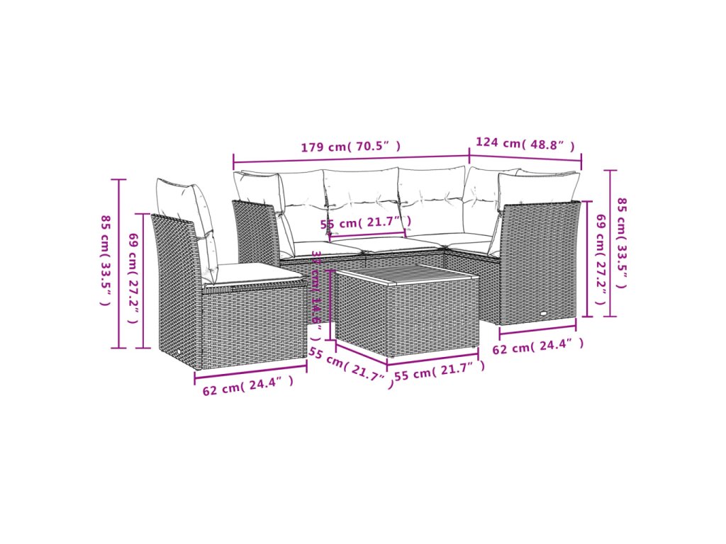 6dílná zahradní sedací souprava s poduškami béžová polyratan 3223644