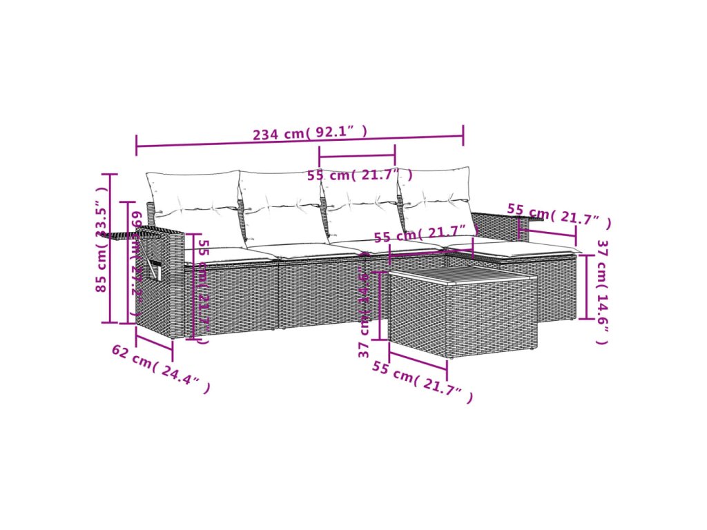 Tato zahradní sedací souprava je dokonalým doplňkem vaší zahrady, terasy nebo dvorku a poskytne vám pohodlné a příjemné místo, kde si můžete povídat s rodinou a přáteli nebo jen tak odpočívat a užívat si pobyt venku.