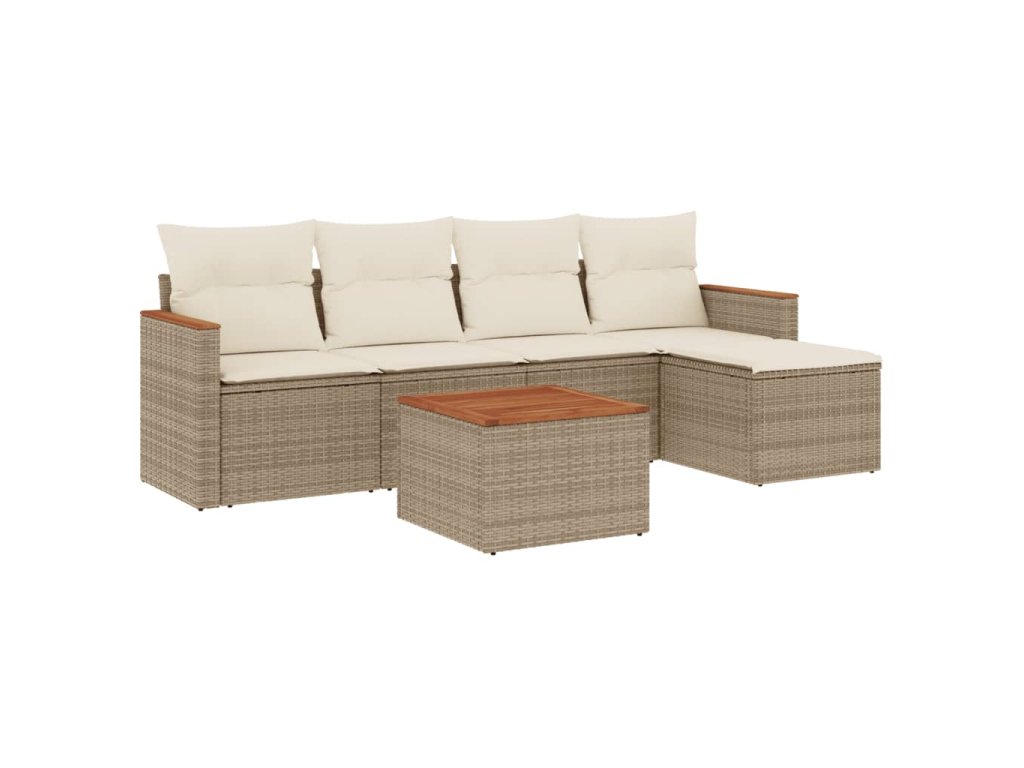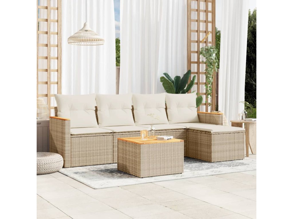 6dílná zahradní sedací souprava s poduškami béžová polyratan 3225925