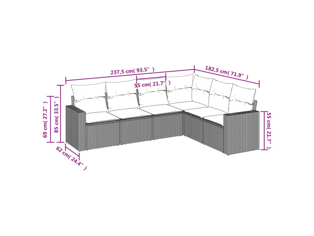6dílná zahradní sedací souprava s poduškami béžová polyratan 3251345