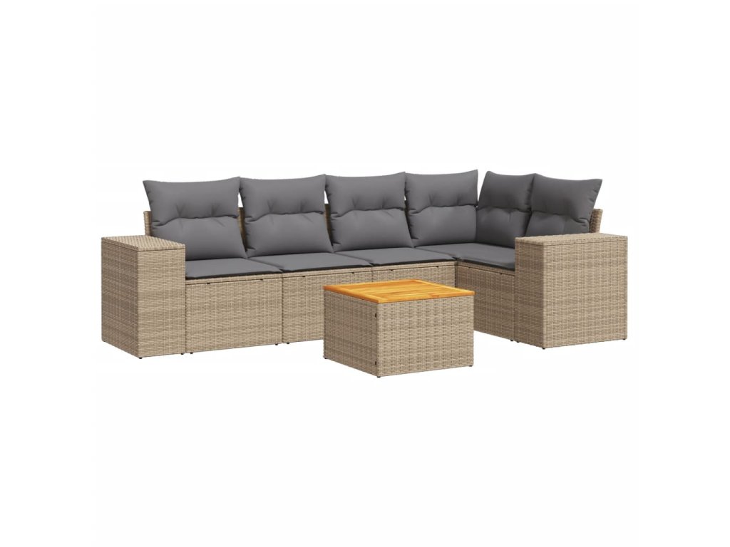 6dílná zahradní sedací souprava s poduškami béžová polyratan 3257767