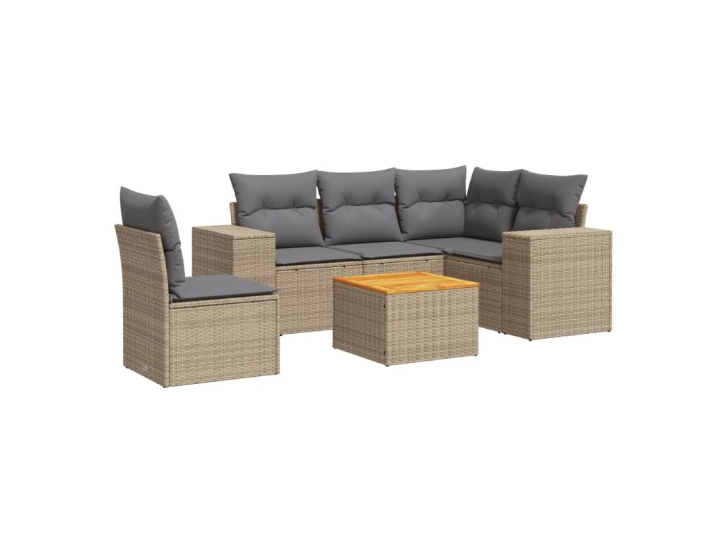 6dílná zahradní sedací souprava s poduškami béžová polyratan 3257781